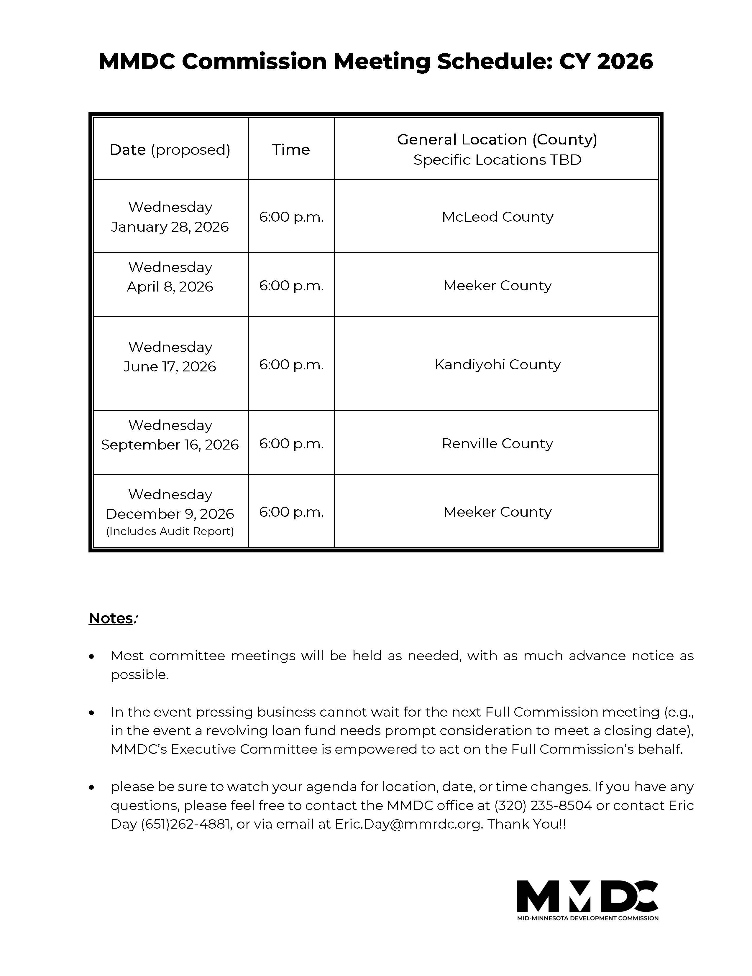 This page is intended to provide our commissioners with frequently used materials. If you have questions or do not see the materials you are searching for please contact MMDC at (320) 235-8504